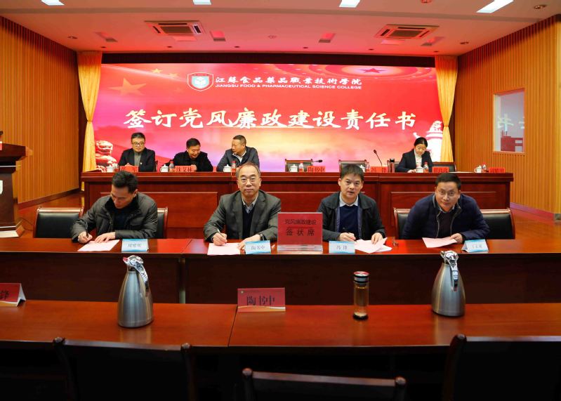 在观看了警示专题教育视频片后,党委书记与学校领导班子成员、主要领导与二级院部、分管领导与职能部门等分别签订2021年党风廉政建设责任书。两名部门负责人代表分别作表态发言。