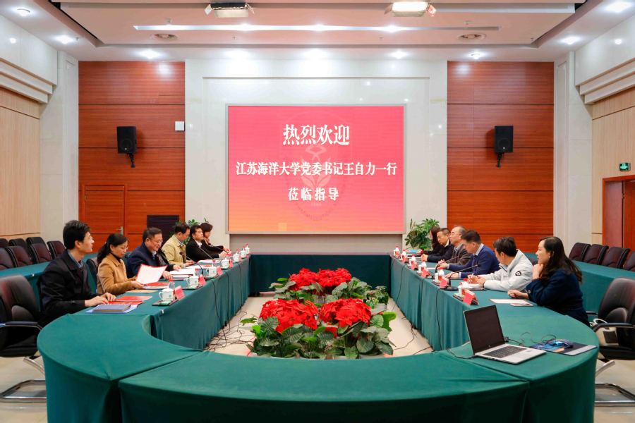 3月22日,江苏海洋大学党委书记王自力一行来访胜游娱乐,校领导陶书中、冯锋、戴光顺与来宾座谈。