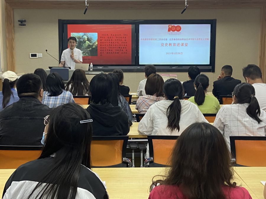 赵慧在主持报告会时表示,希望同学们利用党史学习教育契机,多学习中共党史、了解淮安党史,感悟红色政权来之不易,将来走上工作岗位更好地为党和人民服务。