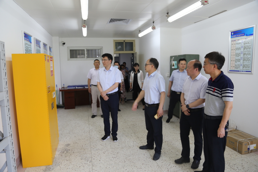进校以后,章润首先来到学校北门值班室,详细了解门卫值班值守、疫情期间校门管控及防恐设施装备等情况。保卫处处长杨军扼要汇报了当前校园安全稳定工作的相关措施及做法。接着督查组一行又到校基础实验中心重点察看了危化品仓库。中心主任陆正清就库存危化品的种类、存储、领用及保管等安保情况详细地向大家作了介绍。