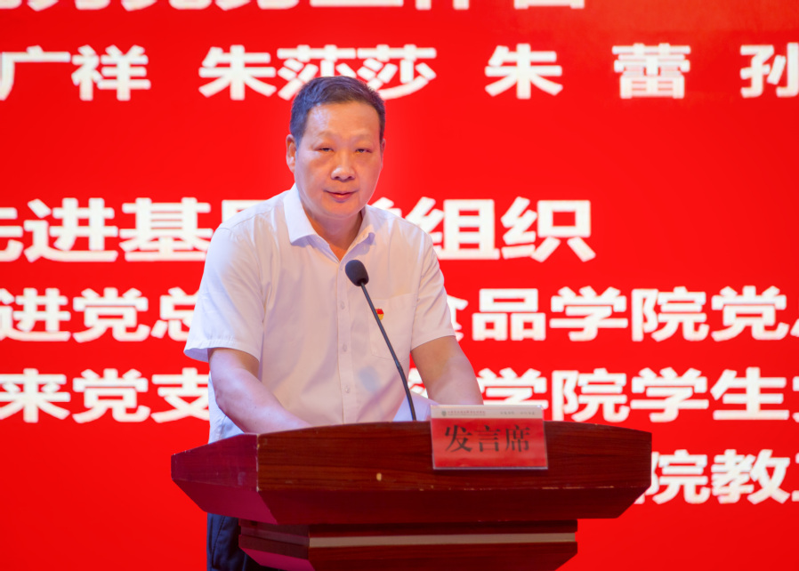 陶书中代表校党委向老党员、受表彰的先进集体和优秀个人致以崇高的敬意和热烈的祝贺。陶书中表示,在中国共产党百年华诞之际,党史学习教育正在全党上下如火如荼地开展,回顾百年党史,每一段都值得铭记,每一页都值得珍藏。在党的领导下,学校61年来始终坚守初心使命,学校党的建设和事业发展都取得了显著成绩。党的百年,既是光辉的丰碑,又是崭新的起点,他希望全校党员自觉地把党史学习教育作为锤炼党性的实践课堂,作为改进作风的重要抓手,在学史明理中提高政治判断力,在学史增信、学史崇德中提高政治领悟力,在学史力行中提高政治执行力。陶书中希望受表彰的先进集体和个人始终如一,坚定信念,立足本职,用实际行动践行共产党人先进本色,不断用习近平新时代中国特色社会主义思想武装头脑、指导实践、推动工作。陶书中指出当前学校“双高”建设进入了船到中流浪更急、人到半山路更陡的时候,全校上下需进一步解放思想、改革创新、真抓实干,以高质量发展为着力点和突破口,在党史学习中凝心聚力出实招,为党和国家培养更多的高素质人才,以最坚定、最自觉、最实在的行动向党的百年华诞献礼。