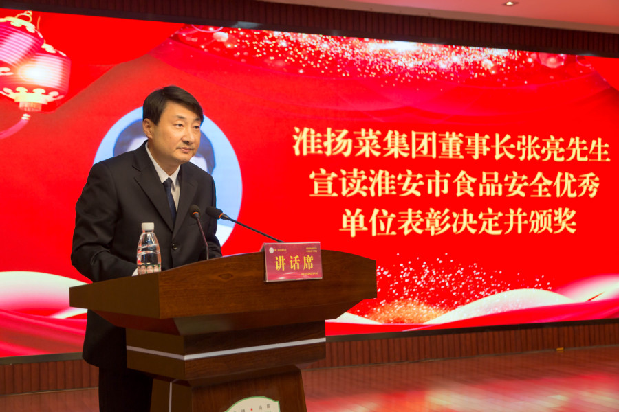 ▲淮扬菜集团董事长张亮宣读表彰决定