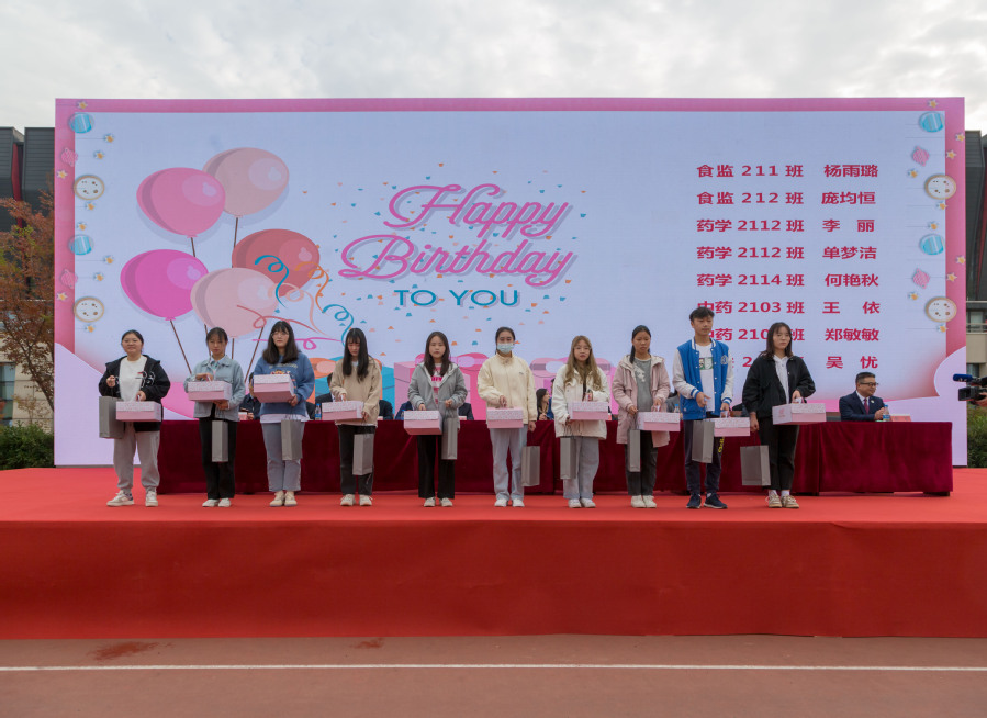 党委书记陶书中、校长冯锋共同为当天过生日的16名同学送上了生日礼物,惊喜的环节也让所有同学倍感温暖。财贸学院的周阳阳同学是2003年10月28日出生的,今天恰好是她的18岁生日,在从校领导手里接过生日礼物后,她哽咽道:“特别意外也特别感动,今天父母都还没有给我送祝福,没想到第一个祝福却是来自学校,谢谢学校这份用心又温暖的成人礼!”