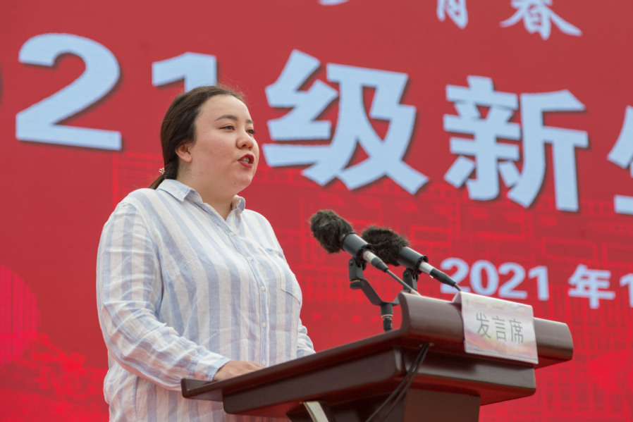电气203班张晓东代表学长学姐欢迎新同学的到来,他希望和学弟学妹们共同传承发扬“以人为本,立德尚能”这八字校训,共同去创造更加美好的未来。来自哈萨克斯坦的留学生达纳表示,学校让所有人感受到了家一样的温暖。药管211班的韩东凝作为新生代表发言,她表示将尽快确定职业发展目标,调整好心态,为自己的大学生活规划蓝图,瞄准目标锲而不舍地追求。