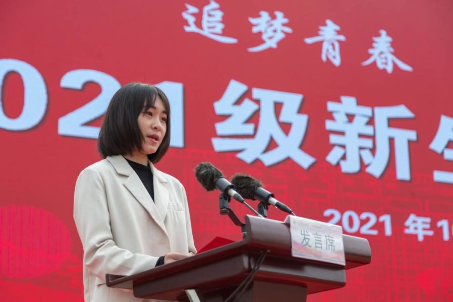 教师代表顾陆倩以“三有三才”寄语新生,她希望大家能够有理想、有本领、有担当,志存高远、胸怀大局、勇往直前,在伟大中国梦的生动实践中实现人生价值。