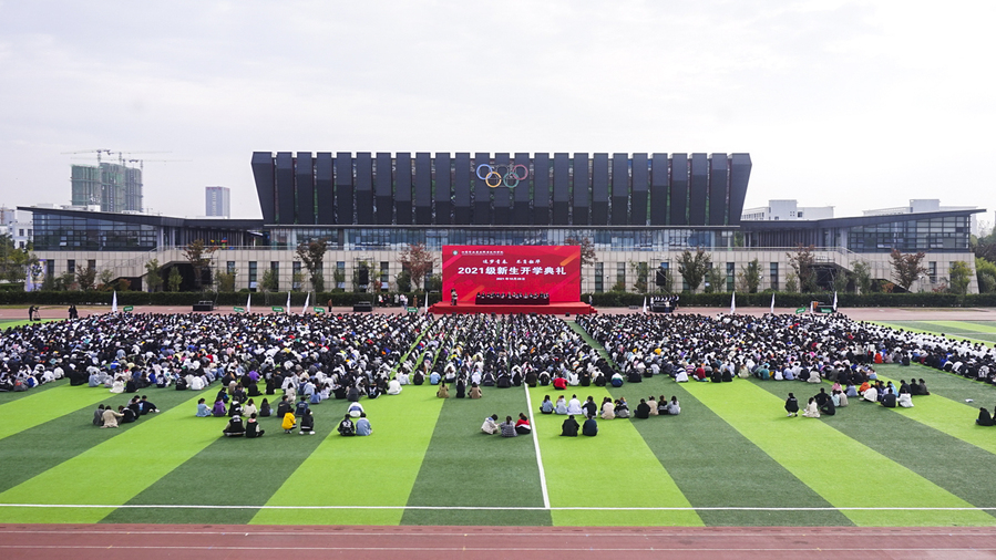 秋风送爽、丹桂飘香。10月28日上午,2021级新生开学典礼在田径场盛大举行。带着对未来学习与生活的希冀,全校近4600名新生共同参与盛典,留学生通过线上直播同步观看。校领导、党委委员陶书中、冯锋、戴光顺、翟玮玮、沈艾林、安进、周耀明、张军出席开学典礼。典礼由党委副书记戴光顺主持。