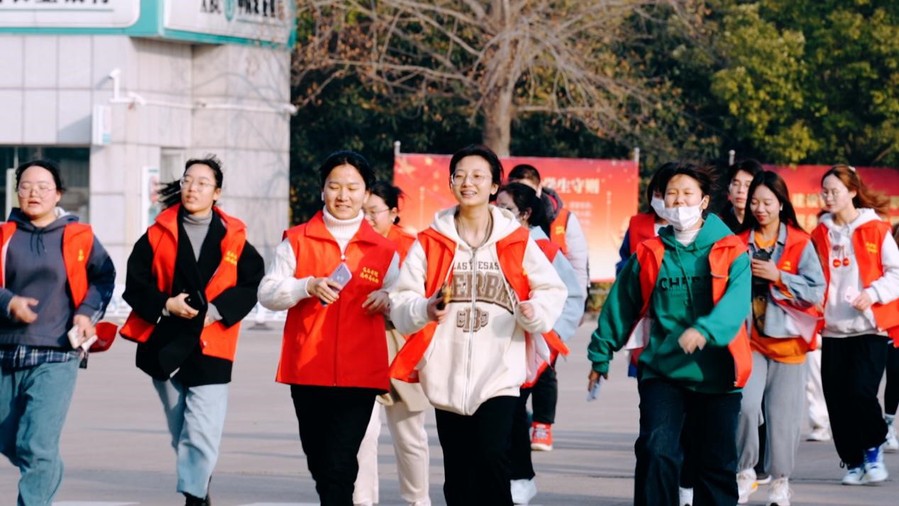 在赛前热身完毕后,大家来到比赛集结点,伴随着一声枪响,校园首届红色迷你马拉松正式开跑。