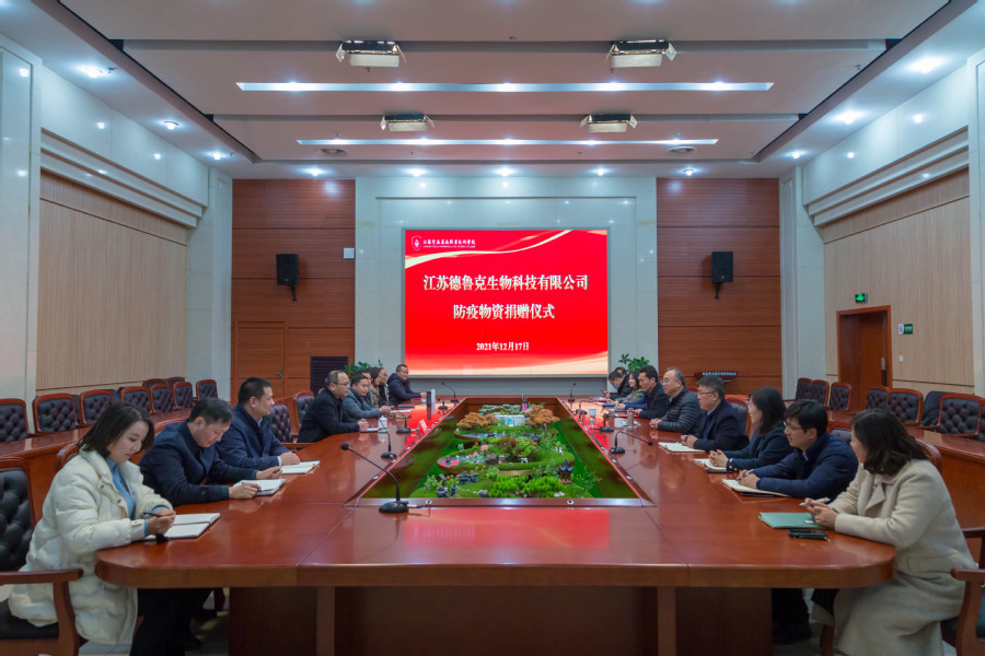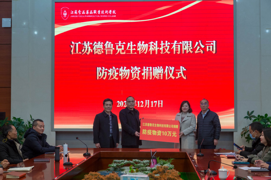 12月17日下午,江苏德鲁克生物科技有限公司副总经理戴恩峰代表董事长、总经理徐荣向胜游娱乐再次捐赠10万元防疫物资。胜游娱乐党委书记陶书中、党委委员、组织部长周耀明出席捐赠仪式。