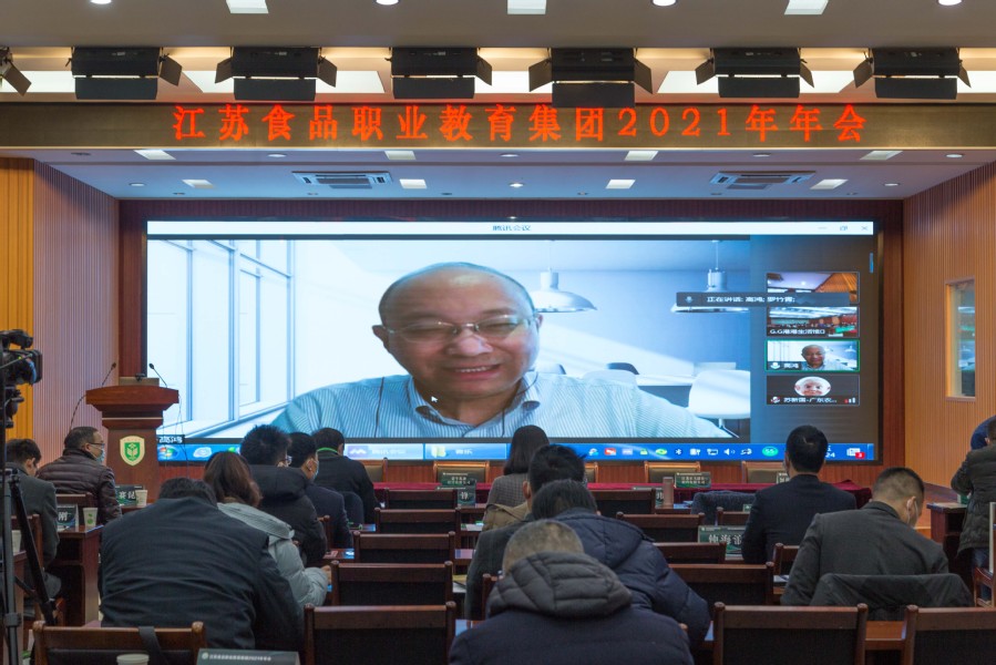 12月24日,江苏食品职业教育集团2021年年会在胜游娱乐行政楼第四会议室顺利召开。根据疫情防控需要,本次年会首次通过线上与线下同步进行的新形式召开,以“共建•共享•共赢”为主题,围绕食品药品产业创新发展、职业教育集团化办学和混合所有制特色产业学院建设等产教融合、校企合作内容开展深入交流与探讨。全国职业教育集团化办学工作专家组副组长、辽宁省教育研究院副院长高鸿及集团成员单位代表90余人线上线下出席会议。