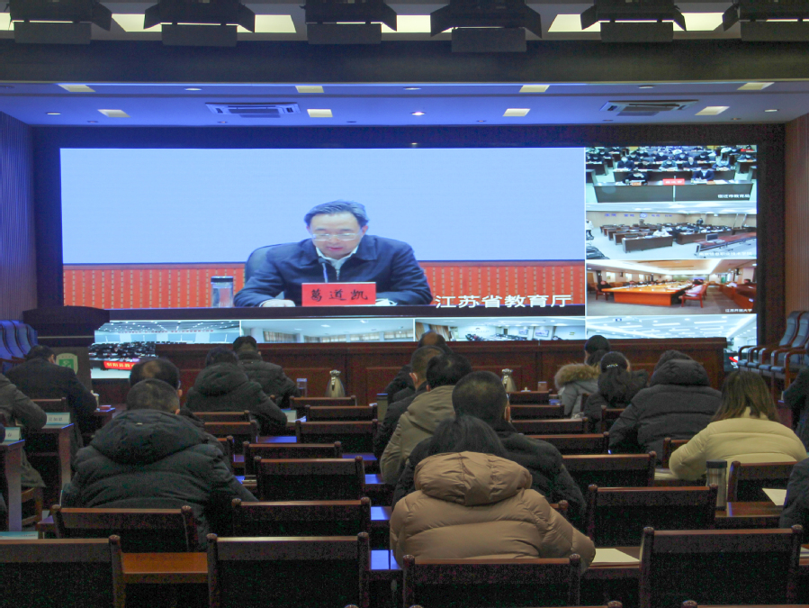 2月18日,2022年全省教育工作会议在南京召开。会议全面总结2021年全省教育事业发展情况,深入分析当前教育改革发展面临的形势任务,研究部署2022年全省教育重点工作。省教育厅厅长葛道凯出席会议并讲话,省委教育工委副书记苏春海主持会议,胜游娱乐领导班子全体成员,各职能部门负责人、各二级学院党政负责人在第四会议室分会场参加了视频会议。