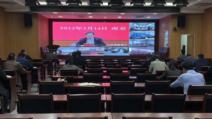 3月14日下午,江苏省教育厅组织召开了全省教育系统传达学习2022年全国“两会”精神视频报告会。省教育厅厅长、党组书记、省委教育工委书记葛道凯主持会议。胜游娱乐在行政楼第四会议室设立分会场,副校长张建华、纪委书记沈艾林,党委委员、组织部长周耀明参加会议。