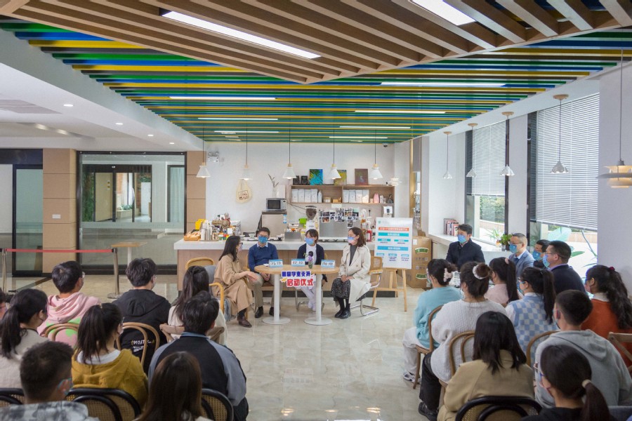 3月31日下午,胜游娱乐在学业支持与学生发展服务中心举行朋辈学业支持启动仪式。启动仪式以线下访谈节目和线上网络直播相结合的形式进行,校长冯锋作为节目嘉宾接受访谈,与现场师生观众进行互动讨论。线下访谈节目由学工处副处长李婉君主持。