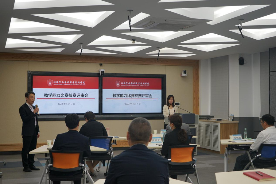 评审会由驻淮高职院校的校领导及教务处负责人担任评审专家。学校23支参赛队伍分别介绍了参赛作品的教学实施报告,对教案中的自选内容进行无学生教学展示,最后评委进行提问及点评。评委一致认为胜游娱乐参赛作品围绕大健康和食品安全,既充分展示了所属院部特色,又宣传和弘扬了传统文化。评委对作品给予高度评价的同时也给出三点建议:第一,实施报告和教案撰写要注意二者的契合;第二,参赛作品要注重内容的选取和亮点的打造;第三,建议跨专业跨学院组队,实现优势互补。