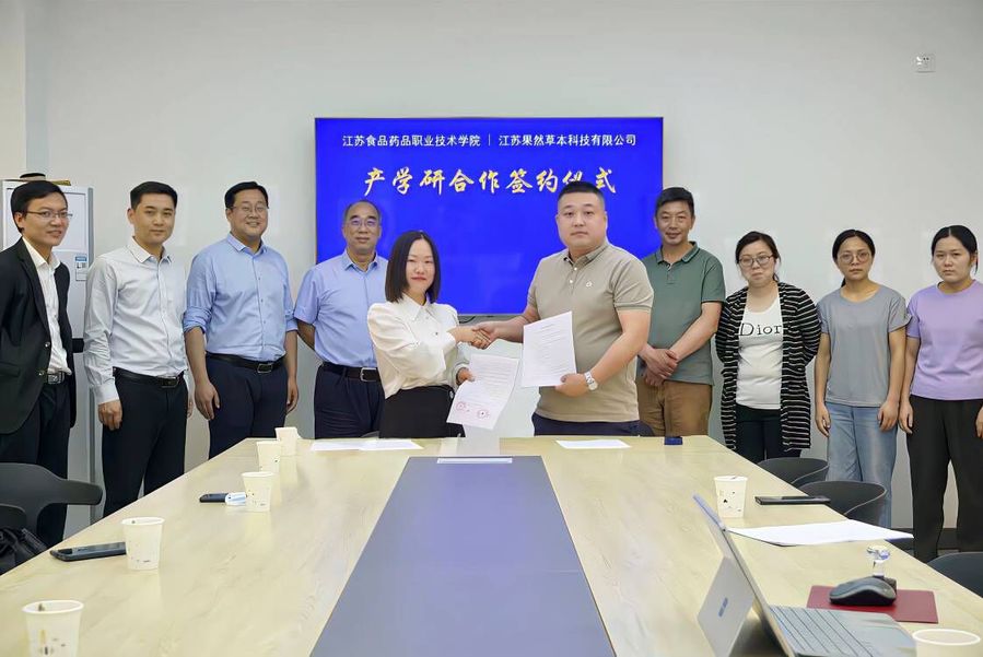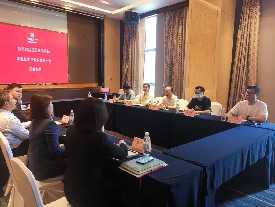 5月19日,学校党委书记陶书中带领食品学院相关人员一行赴江苏果然草本科技有限公司开展洽谈合作。
