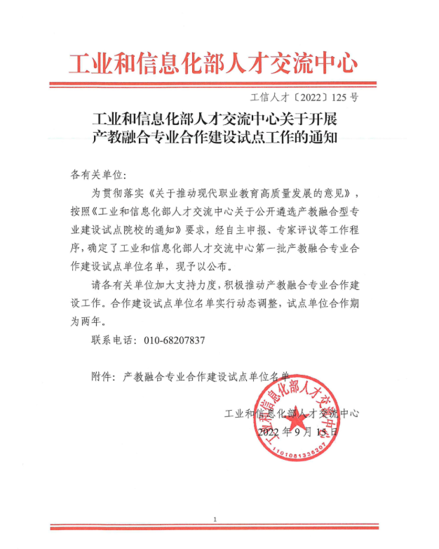 为贯彻落实《关于推动现代职业教育高质量发展的意见》,按照《工业和信息化部人才交流中心关于公开遴选产教融合型专业建设试点院校的通知》要求,经自主申报、专家评议等工作程序,胜游娱乐成功入选2022年首批工业和信息化部人才交流中心产教融合专业合作建设试点单位,试点专业为数字媒体技术,试点建设周期为2年。