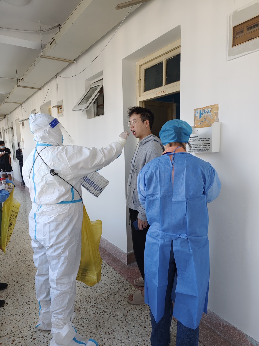 今年新生报到,正赶上部分地区疫情有反复趋势,为确保校园安全,根据上级疫情防控要求,对部分风险地区的同学实行七天五检健康监测措施。为保障工作顺利完成,学校采取志愿报名的方式,组织了由十八名党员组成的党员突击队,与同学们同吃同住,完成核酸检测、快餐发放、卫生消杀等服务工作,解决学生在健康监测期间遇到的各种问题。