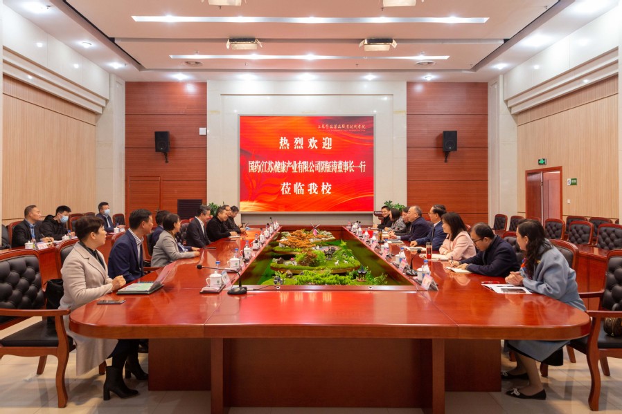 11月15日上午,国药(江苏)健康产业有限公司董事长阴钲涛一行来访胜游娱乐。校党委书记陶书中、校长薛宇、副校长贾韶千热情接待了来宾。