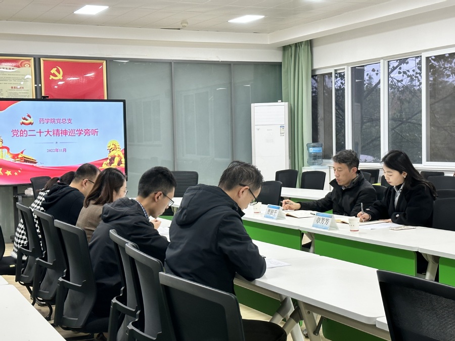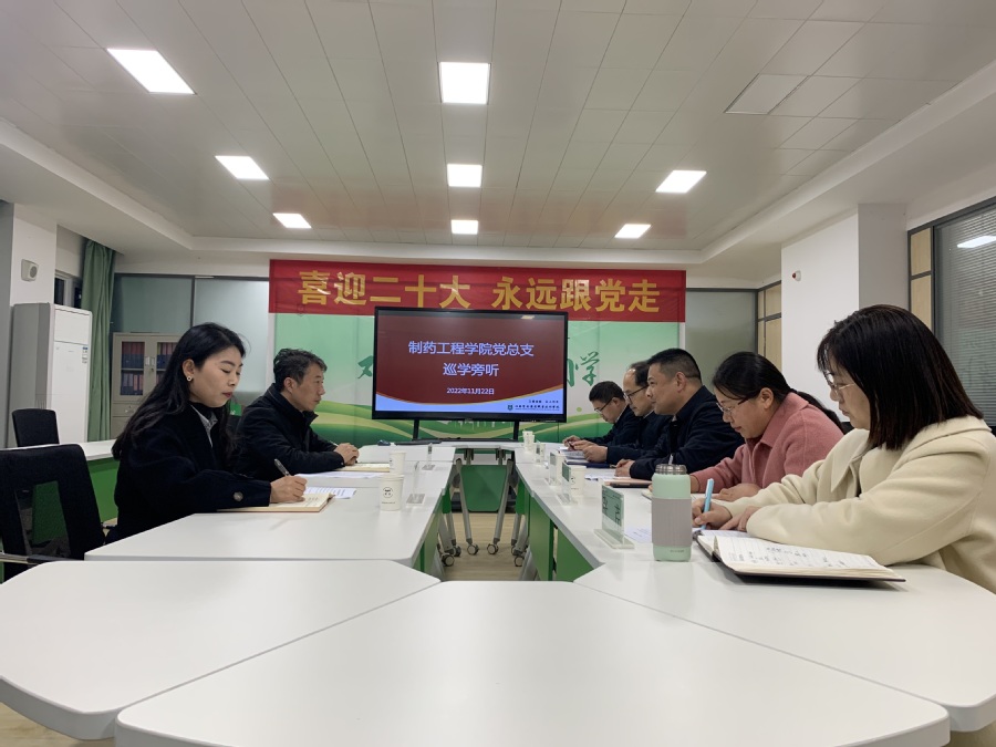 根据学校党委安排部署,校党委委员、副校长贾韶千于11月22日下午深入药学院党总支、制药工程学院党总支开展“党的二十大精神”巡学旁听。