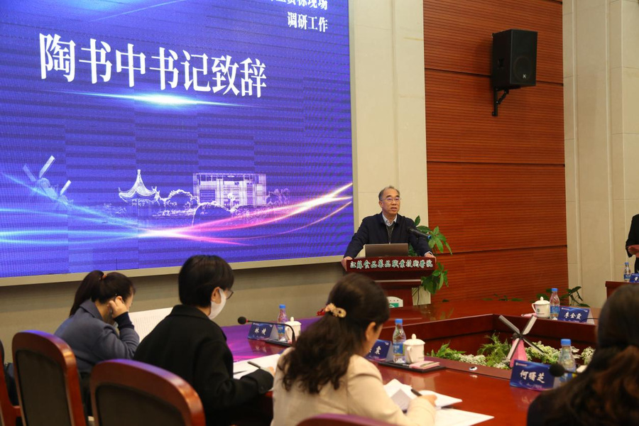 专家组由苏州卫生职业技术学院副院长吴丽荣担任组长、江苏护理职业学院副院长夏立平担任副组长。专家组成员包括宁波卫生职业技术学院护理学院院长费素定、江苏医药职业学院护理学院党总支书记何曙芝、淮安市第一人民医院护理部副主任陈梅、江苏卫生健康职业学院护理学院副院长洪震、苏州卫生职业技术学院护理学院副院长朱芬芬、苏州卫生职业技术学院护理学院教学管理办公室副主任林婕、苏州卫生职业技术学院高教所(行指委秘书处)管明德。学校党委书记陶书中、校长薛宇、副校长贾韶千陪同调研。