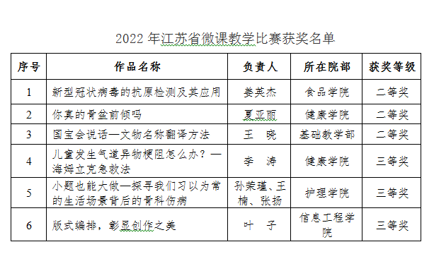 近日,2022年江苏省高等学校微课教学比赛结果公示,本次比赛全省共90余所高职院校参与,经专家在线评审,胜游娱乐共有6项作品获奖,其中二等奖3项、三等奖3项。
