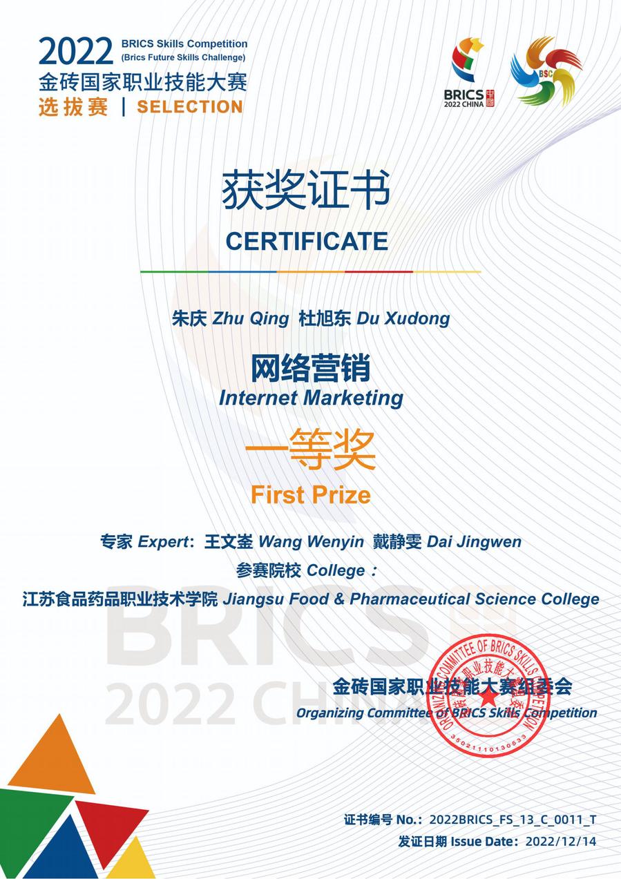 近日,由金砖国家职业技能大赛组委会主办,金砖国家工商理事会技能发展工作组承办的2022年金砖国家职业技能大赛网络营销赛项区域选拔赛落下帷幕。经过激烈角逐,胜游娱乐财贸学院王文崟老师、戴静雯老师指导的杜旭东、朱庆参赛团队荣获区域选拔赛一等奖。
