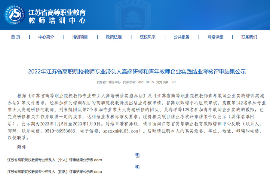 近日,经过前期申报、江苏省高职师培中心组织审核,2022年江苏省高职院校教师专业带头人高端研修和青年教师企业实践结业考核评审结果出炉。胜游娱乐参评三人均顺利通过考核,其中健康学院东方参评项目获评专业带头人高端研修优秀项目。本次江苏省共有142项专业带头人高端研修项目参与评选,共评出11项专业带头人高端研修优秀项目,东方获评优秀项目同时也是胜游娱乐该类项目首次获评省级优秀。