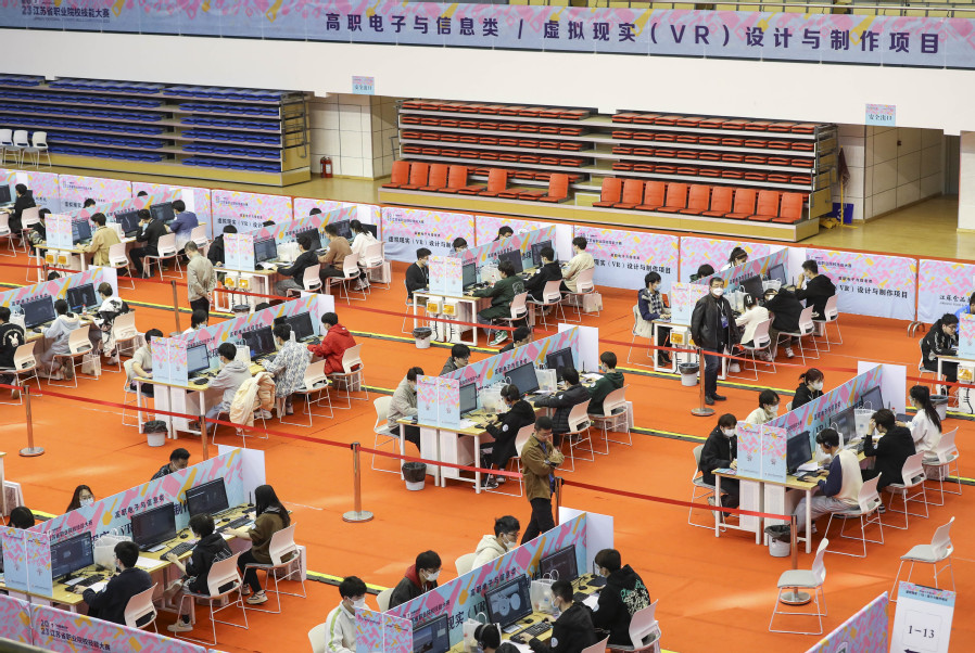 3月11日,“中国银行杯”2023年江苏省职业院校技能大赛高职电子与信息类虚拟现实(VR)设计与制作项目在胜游娱乐大学生活动中心火热开赛。该赛项由江苏省教育厅、省发改委、省工业和信息化厅等16个单位主办,胜游娱乐承办。来自全省37所高校的111名选手围绕虚拟现实技术展开激烈角逐。