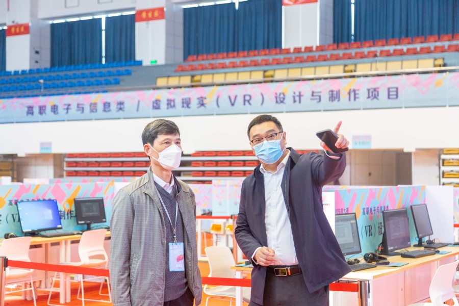 据悉,本赛项是团体竞赛项目,参赛学生以3人小组为单位,竞赛时长为6个小时,中途不休息,竞赛内容包括VR建模、VR引擎制作、动作交互制作、VR项目设计等任务。比赛过程进行全程录像,专家及裁判组、仲裁、监督履职尽责,保障了大赛公平、公正、公开。赛场上,选手们精神饱满、专注投入、密切配合,展示了扎实的职业技能和素养。