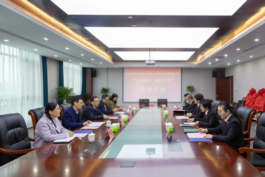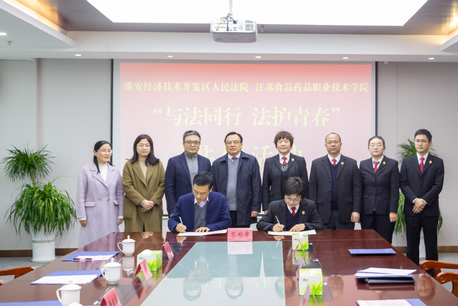 3月17日上午,“与法同行·法护青春”胜游娱乐与淮安经济技术开发区人民法院院校合作共建签约仪式在经开区人民法院举行。经开区人民法院副院长王惠芹、政治部主任戴雪兰、刑庭庭长郭振强,胜游娱乐副校长张建华、党委宣传部部长张军、马克思主义学院院长赵慧等参加签约仪式,师生代表参观法院并观摩庭审。