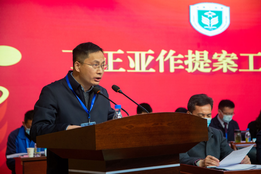 ▲人事处处长丁正亚作《提案工作报告》