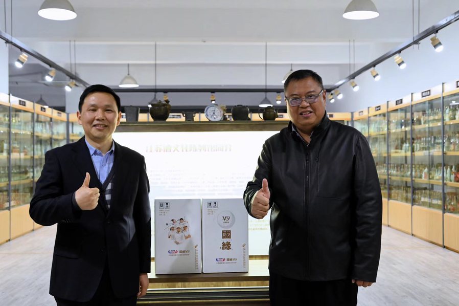 参观结束后举行了捐赠仪式。在大家的共同见证下,陈先会长代表江苏酒文化陈列馆,向胜游娱乐酒文化与烹饪艺术研究院捐赠了30瓶上个世纪80-90年代不同地域、品类和香型的陈年白酒,助力胜游娱乐开展酒文化研究和酒业人才培养。随后,羊栋会长向江苏酒文化陈列馆回赠了今世缘的新款产品。