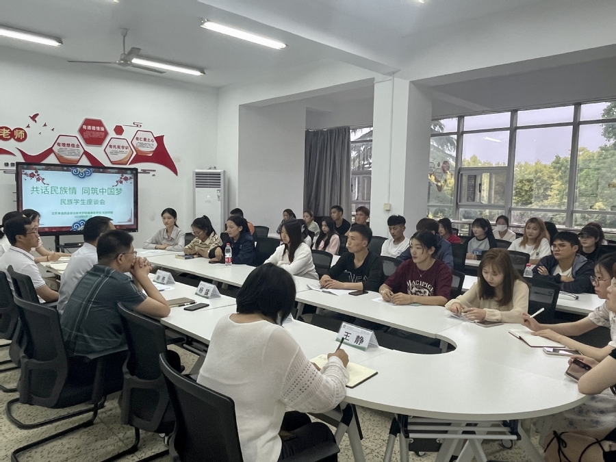 座谈环节,少数民族同学分享了回族新年的“九大碗”,彝族的“火把节”等饮食文化和特色民俗,欢声笑语间,加深了对民族文化的认知。座谈会还梳理了当前大家的需求并积极提供解决方案。(通讯员:王玉娇)