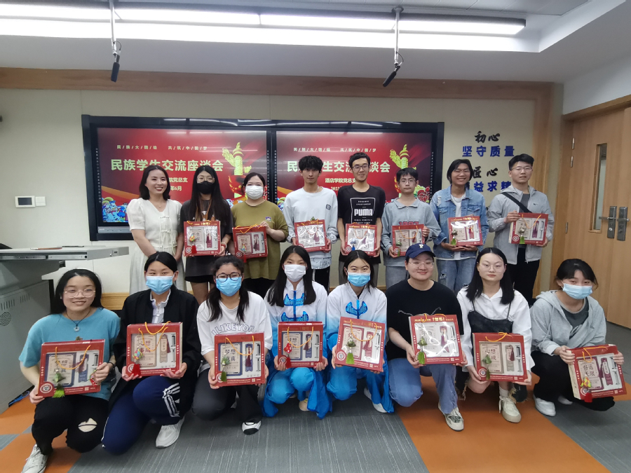 酒店学院:6月9日下午,酒店学院召开民族团结进步主题教育活动,活动分为主题讲座与座谈两个环节,包括藏族、回族、壮族、彝族、蒙古族、土家族、布依族等在内的20名同学参加了活动,活动由倪毅老师主持。