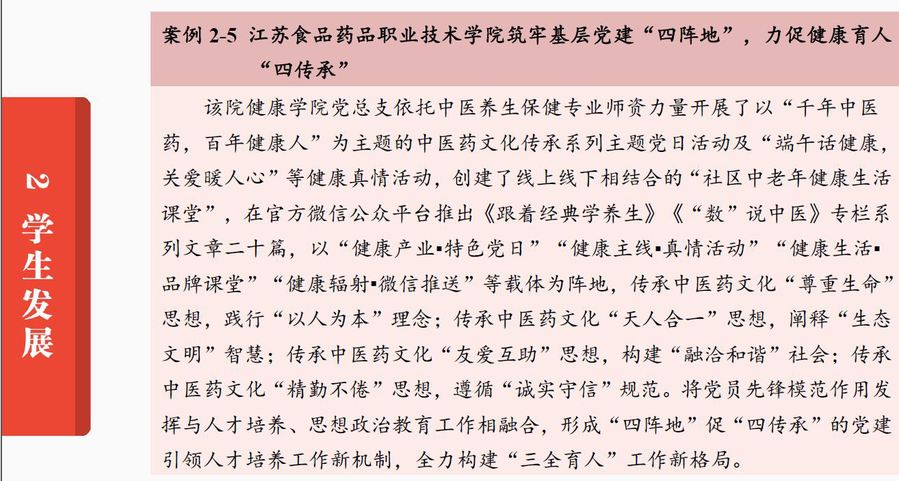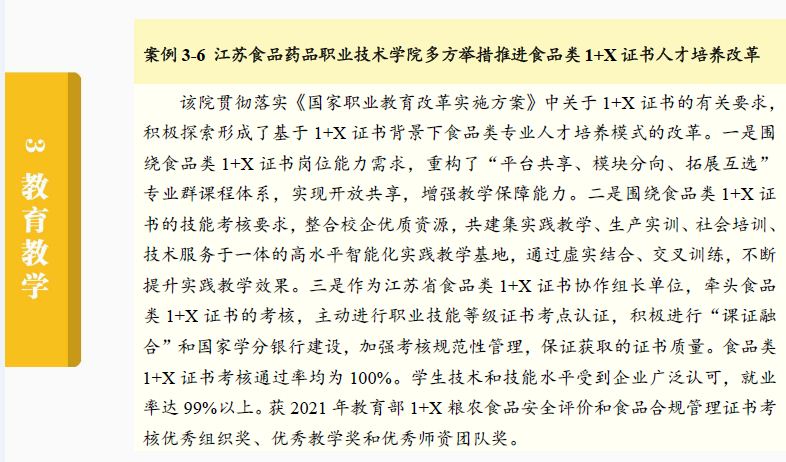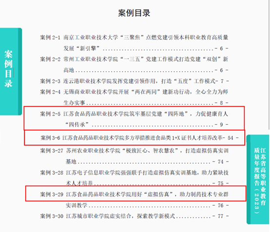 质量年度报告是高等职业教育履行责任担当、确立质量发展观、宣传发展成绩、接受社会监督的重要制度载体,是高等职业学校强化内涵发展、全面提高人才培养质量的重要举措。此次全省90所高等职业院校共报送典型案例1136项,省年报选用157项。其中,胜游娱乐健康医学院报送的《筑牢基层党建“四阵地”,力促健康育人“四传承”》案例被编入“学生发展·党建引领”篇,食品学院报送的《院多方举措推进食品类1+X 证书人才培养改革》案例被编入“教育教学·专业建设”篇,制药工程学院报送的《用好“虚拟仿真”,助力制药技术专业群实训教学》案例被编入“教育教学·数字资源”篇。