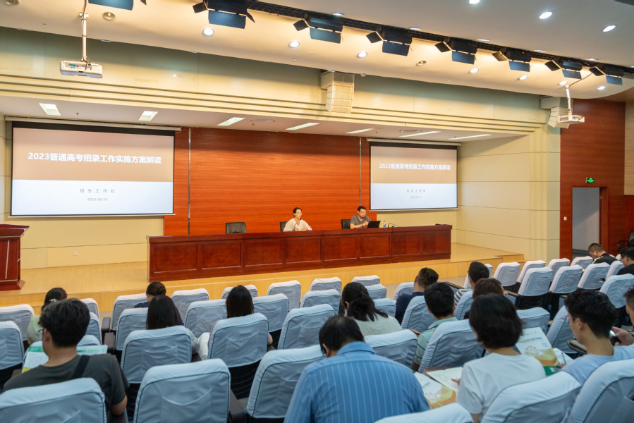 为进一步提升招生宣传工作的质效,充分研读2023年普通高考招生批次各项政策,招生工作处于6月19日下午在图书馆多功能厅举行2023招生宣传工作专题培训,省内外各招生组成员参会。招生工作处处长李婉君主持会议,副处长张鹏程解读招录实施方案。