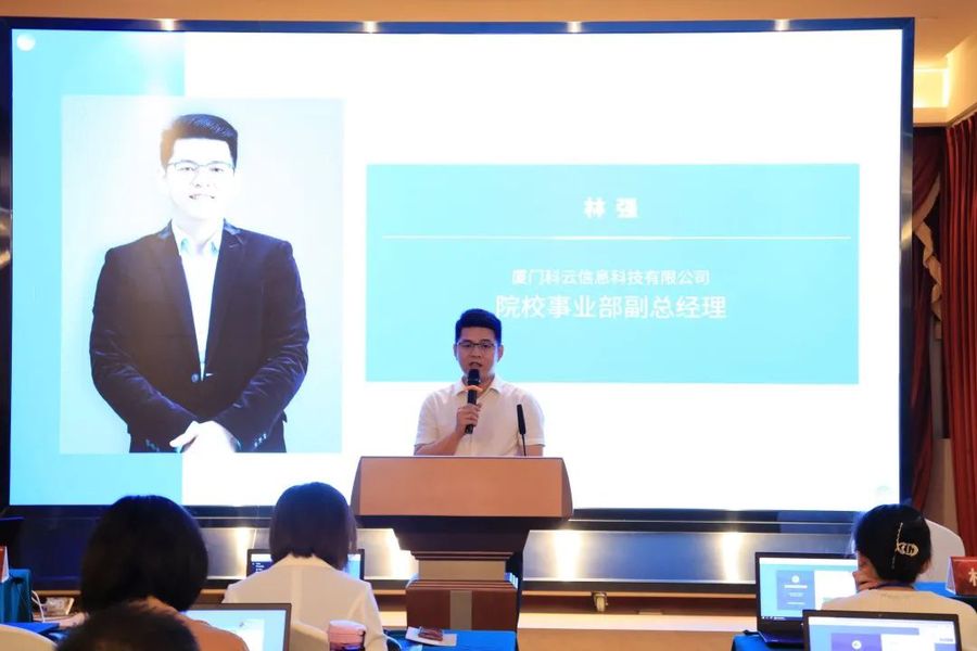 研修班开班仪式于6月15日上午举行,数字经济学院副院长张荣、厦门科云信息科技有限公司院校事业部副总经理林强、科云教育研究院副院长林剑平及培训讲师出席开班仪式。