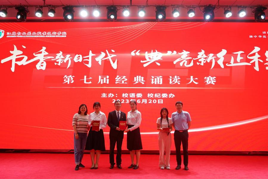 通过评委们的现场打分,制药工程学院杨鑫、朱玲诵读的《红船,从南湖起航》和数字经济学院邵运川、杜晓明、王艺诵读的作品《雕像前盛开的红杜鹃》获得教师组一等奖;健康医学院林芝、金欣怡、徐天天、郁欣妍、皇甫雯洁诵读的作品《中华颂》和制药工程学院付思琴、朱婷琪、王文杰、陆熙诵读的作品《青春》获得学生组一等奖。