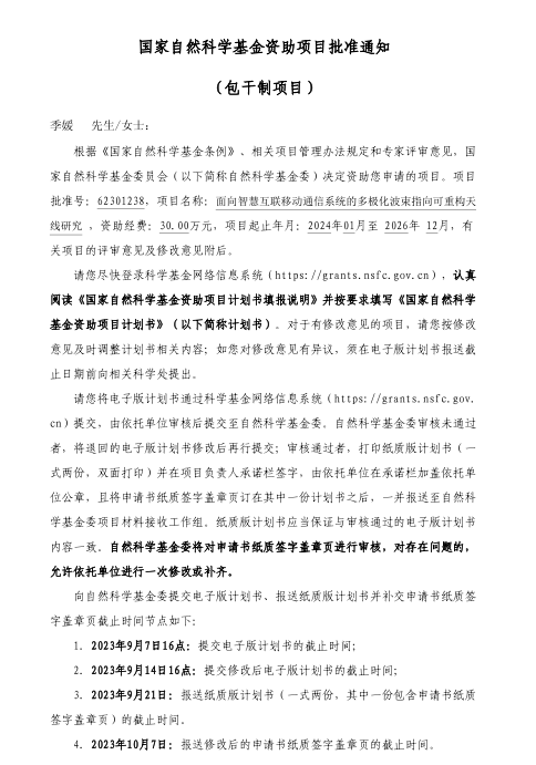 2023年8月24日,国家自然科学基金委公布了国家自然科学基金的评审结果,胜游娱乐季媛老师《面向智慧互联移动通信系统的多极化波束指向可重构天线研究》喜获青年基金项目。