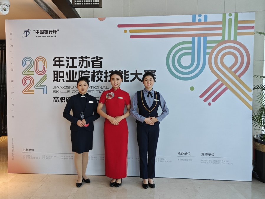 1月5日至1月8日,由江苏省教育厅、江苏省发展和改革委员会、江苏省工业和信息化厅等16个部门主办、南京旅游职业学院承办的“2024年江苏省职业院校技能大赛高职旅游类·酒店服务项目”完成各项赛程,顺利落下帷幕。本赛项为团队赛,由前厅接待服务、中餐宴会服务和休闲餐服务三大模块组成,主要考察酒店管理专业学生的核心技能和相关知识要求。来自全省37所高职院校的111名选手围绕三大模块同台竞技,胜游娱乐酒店学院钱惠新、张丽等教师指导团队共同指导的代真、苏宇鸽、李文静三名同学取得历史性突破,在本赛项中获全省第三名,荣获2024年江苏省职业院校技能大赛高职旅游类·酒店服务项目一等奖,并进入国赛遴选。