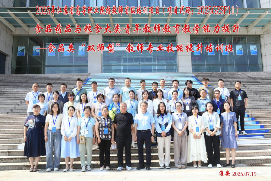 7月19日上午,胜游娱乐承办的2025年省培项目食品药品与粮食大类青年教师教育教学能力提升—食品类“双师型”教师专业技能提升培训正式开班。胜游娱乐副校长贾韶千出席开班仪式并致辞,来自江苏省高职院校的37名学员参加了本次开班仪式,仪式由食品学院院长郑虎哲主持。