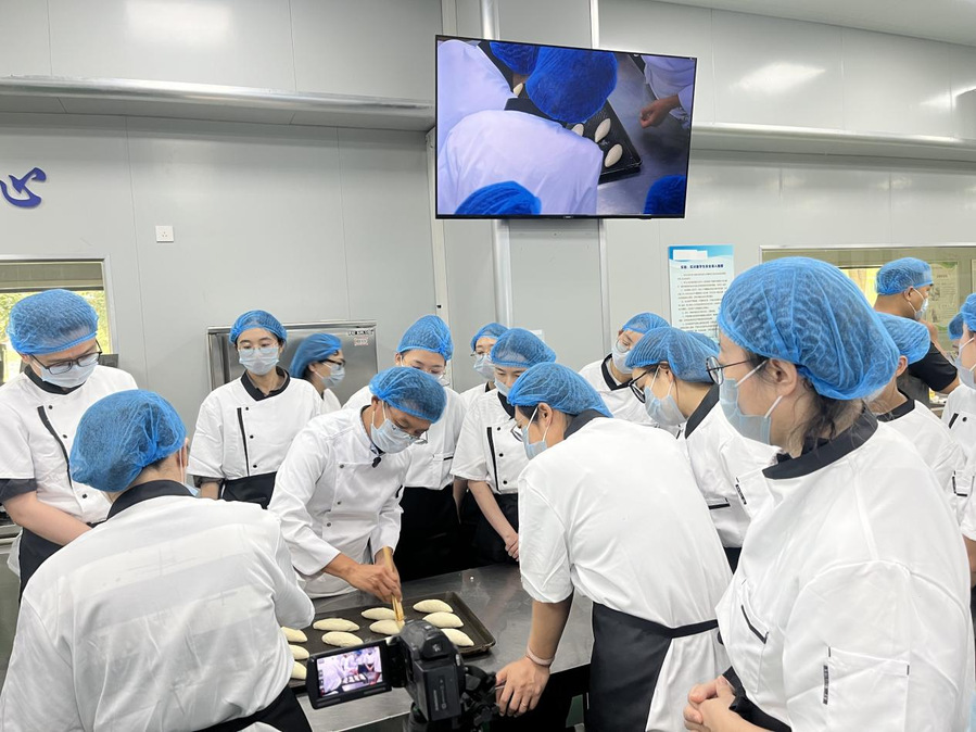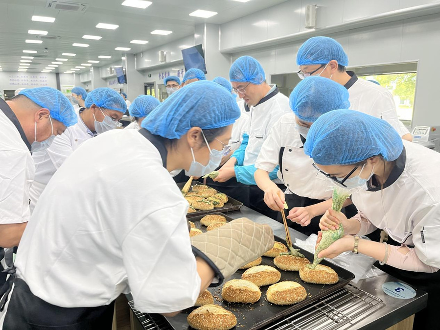 24日下午,在胜游娱乐烘焙车间,食品学院李红涛教授为学员们进行烘烤食品类课程建设经验分享,介绍了胜游娱乐国家级精品课程团队建设和取得的成果,并指导学员们亲手完成蒜香芝士软欧面包的制作过程。学员们积极开展团队协作,亲身参与每一道制作工序,沉浸式体验高质量课堂实践教学。