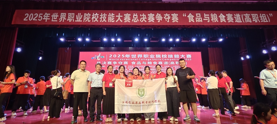 8月22日至26日,2025年世界职业院校技能大赛总决赛争夺赛食品与粮食赛道(高职组)在芜湖职业技术大学举办。来自全国职业院校的100支优秀队伍同台竞技。胜游娱乐食品学院学子陆怡宁、焦汐颜、杨露露,在李艳霞、曹阳两位教师的悉心指导下,凭借扎实的专业功底、实用的创新技术与稳定的心理素质,从百支强队中脱颖而出,获得小组第一的优秀成绩,成功摘取金牌,并在复评阶段,强势挺进排位赛,展现出强劲的竞争力。