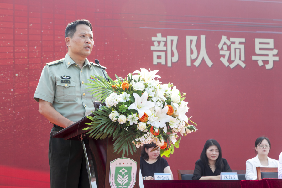 开学典礼后,军训动员大会随即举行。73106部队马颖伟副政委作军训动员讲话,他希望同学们筑牢思想根基,做到令行禁止,勇于挑战自我,精诚团结协作,以更加挺拔的脊梁、更加坚定的步伐、更加自信的笑容,迎接未来挑战。