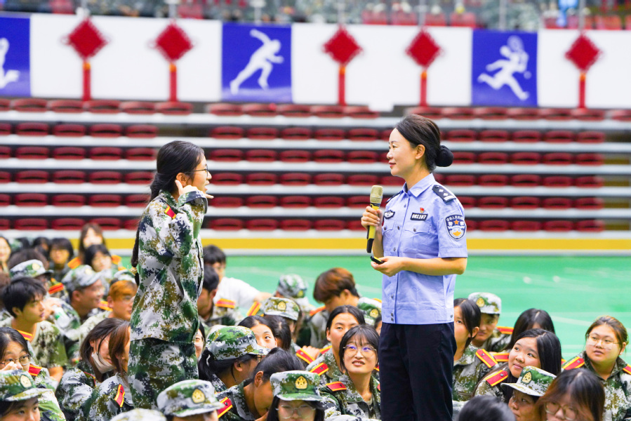 王静警官以“反诈是门必修课,筑牢防线守好责”为主题,围绕“常见电信诈骗案件解析、常见帮信行为介绍、个人防骗技巧实用指南”三个方面进行详细讲解。宣讲过程中,王静警官重点剖析了刷单返利、虚假购物、游戏账号交易、冒充公检法等常见诈骗手段的特点与作案规律,系统揭示了电信网络诈骗隐蔽性强、迷惑性大、迭代速度快的新特征,切实提升了新生对各类诈骗行为的辨识和应对能力。