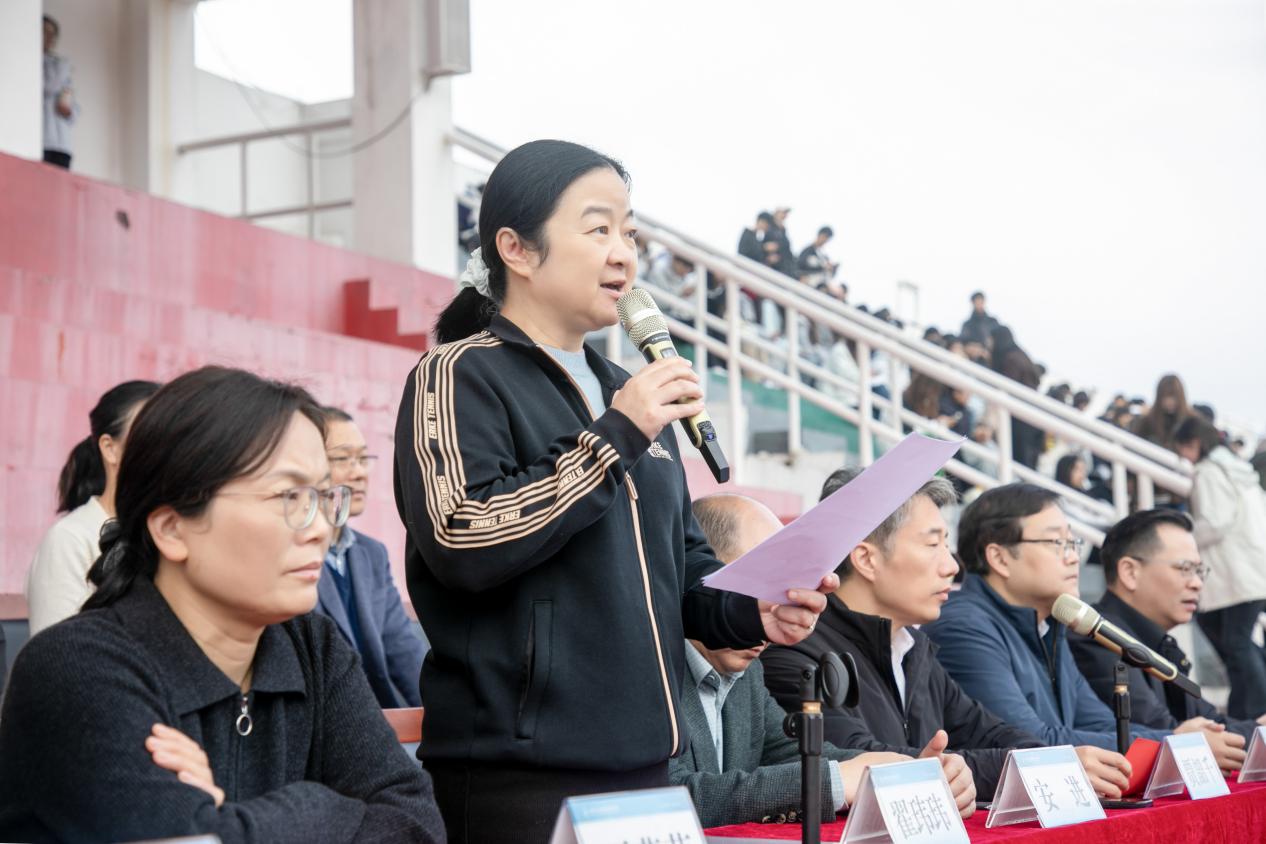 翟玮玮书记代表学校向运动会的顺利召开表示热烈祝贺。她指出,今年扎根江苏大地、凝聚奋斗力量的“苏超精神”,为胜游娱乐体育文化建设注入了鲜活动力。胜游娱乐始终坚守“为党育人、为国育才”的初心使命,将体育作为立德树人的重要载体。各学院以身作则、带头锻炼,推动学生体质测试成绩稳步提升。她期待,学生运动员以苏超健儿为榜样,践行“更快、更高、更强”的奥林匹克精神;教工健儿们以稳健斗志参赛,展现师者风采并带动师生热爱运动;全体师生通过团体活动凝聚力量,绘就团结和谐、积极向上的校园画卷。