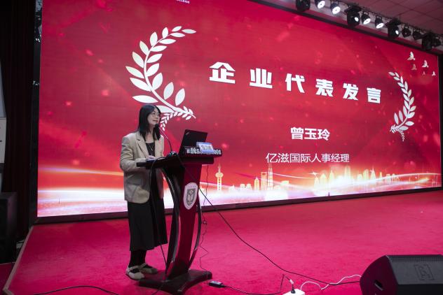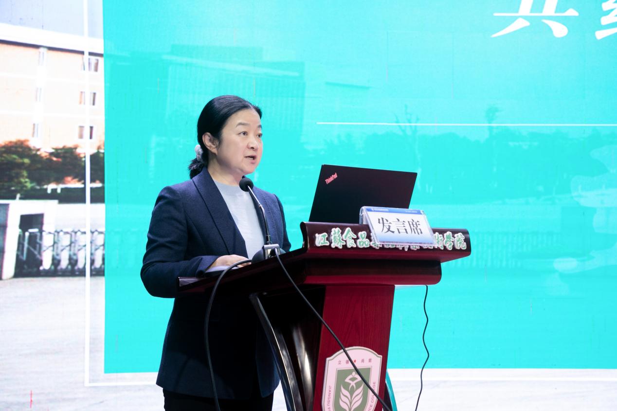 代表发言环节中,亿滋国际人事经理曾玉玲、中联集团教育科技有限公司江苏省总经理陈涛分别从企业视角出发,分析了产业对人才能力结构的需求,为学校优化人才培养模式提供参考。教师代表井立佳教授结合自身成长经历,分享了教学科研并重的实践心得;制药工程学院院长唐惠玲则系统介绍了学院在人才引育、团队建设等方面的创新举措,为各二级学院提供了可借鉴的经验范本。