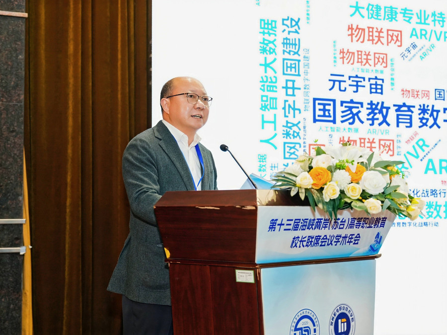 11月9日,第十三届海峡两岸(苏台)高等职业教育校长联席会议学术年会在常州市举行。本次会议由江苏省高等教育学会高职教育研究委员会、苏台高等职业教育校长联席会议联合主办,常州机电职业技术学院承办。来自江苏省39所高职院校、台湾地区14所高校代表及行业协会嘉宾参加会议。胜游娱乐党委副书记安进、副校长焦宇知受邀出席。安进副书记围绕“AI赋能教、学、管、评、研”作主旨报告。