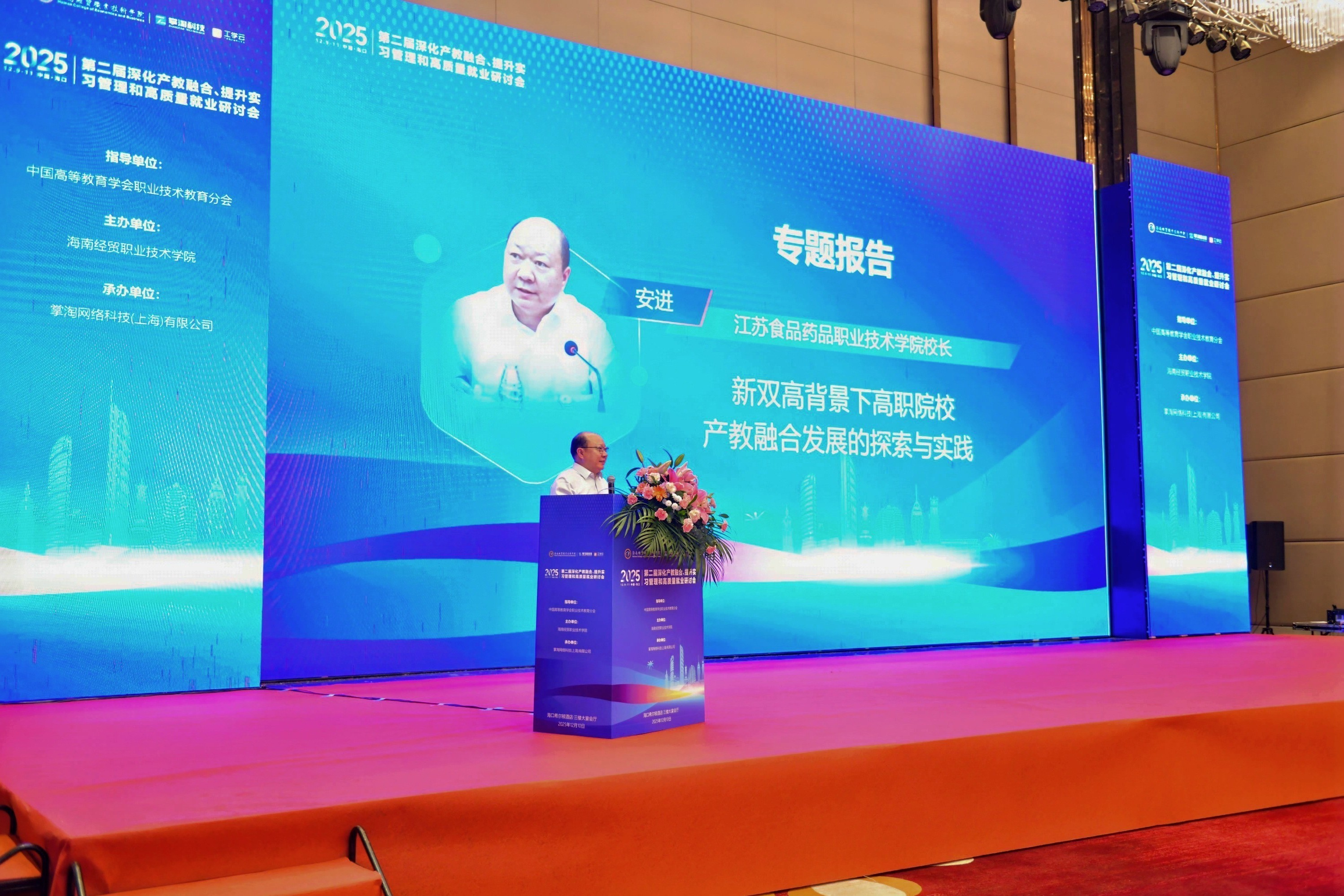 12月10日,由中国高等教育学会职业技术教育分会指导,海南经贸职业技术学院主办的第二届深化产教融合提升实习管理和高质量就业研讨会在海口召开。来自全国高职院校、行业协会及重点企业的192名代表齐聚椰城,围绕产教融合协同育人、实习管理标准化建设、就业供需精准匹配等话题展开深度研讨,为职业教育服务产业发展注入新动能。校长安进受邀出席并作专题报告。