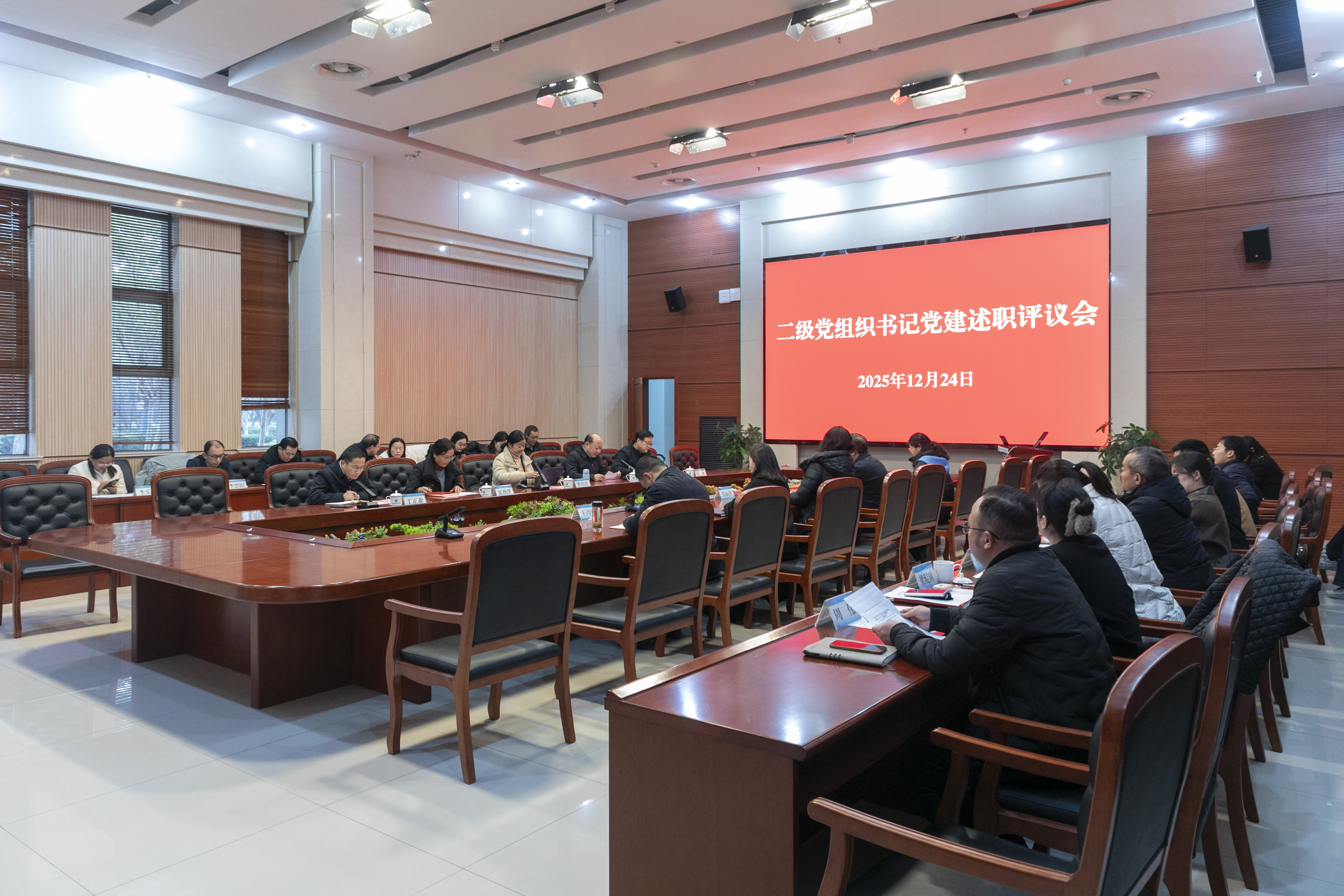12月24日下午,胜游娱乐2025年度二级党组织书记抓基层党建述职评议会在图书馆多功能厅召开。党委书记翟玮玮出席会议并讲话,全体在校党委委员、党务部门负责人及各二级党组织书记参加会议。会议由党委副书记、校长安进主持。
