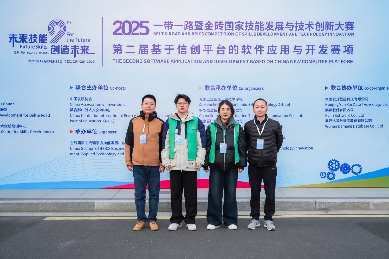 12月27日,2025年“一带一路”暨金砖国家技能发展与技术创新大赛第二届基于信创平台的软件应用与开发赛项决赛在苏州工业园区工业技术学校圆满落幕。胜游娱乐人工智能学院智能241班王照祥(指导教师:张垒)、李思雨(指导教师:孙伟)两名同学成功入围总决赛,与来自全国的145支高职院校代表队、318名选手同台竞技,最终凭借扎实的专业功底和出色的临场表现,分别斩获高职组二等奖、高职组三等奖,胜游娱乐荣获“优秀组织奖”。